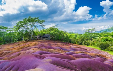 - In het zuiden van het eiland is Chamarel, het “Land van de Zeven Kleuren”, even prachtig als verrassend: met een grandioze waterval op de achtergrond onthult de open plek de hobbelige, veelkleurige bodem, getint met oker, bruin, rood en paars.